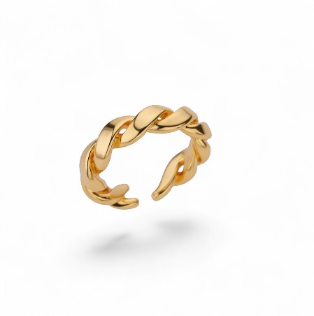 Moderno e cheio de personalidade, o Anel Trama Dourada apresenta um design marcante formado por elos entrelaçados que criam um efeito visual elegante e contemporâneo. Sua estrutura aberta garante conforto e leve ajuste ao dedo, enquanto o acabamento polido realça o brilho intenso do dourado, trazendo sofisticação e presença para qualquer composição.