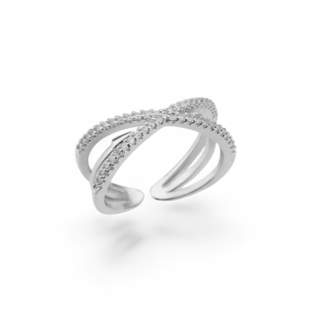 Moderno e cheio de brilho, o Anel X Radiance apresenta um design fluido com curvas delicadamente cravejadas com micro zircônias que refletem a luz com intensidade. Sua estrutura aberta proporciona conforto e um toque contemporâneo que combina com produções elegantes ou minimalistas.