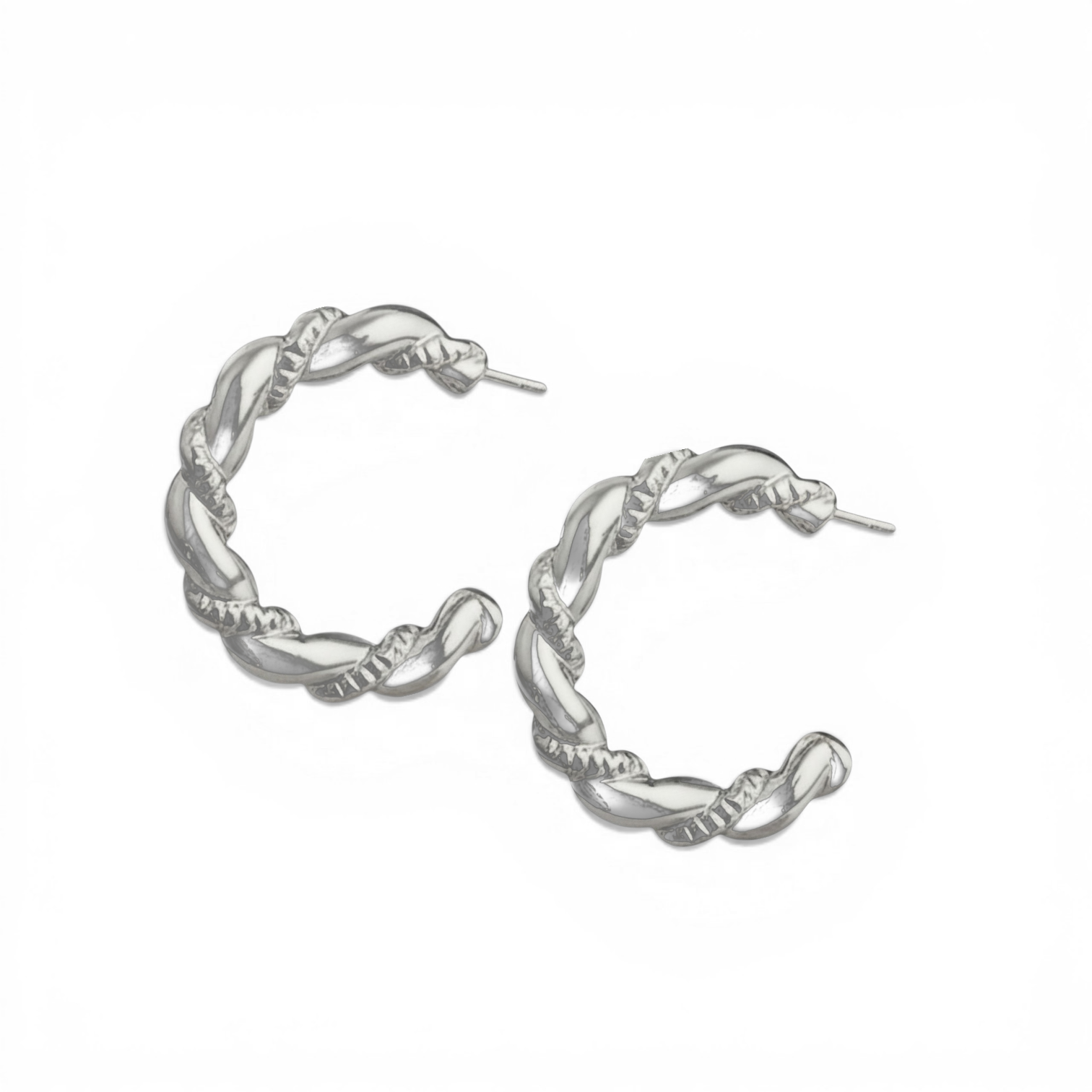 Brinco Argola Torcida com design orgânico e textura torcida, que destaca um estilo contemporâneo e autêntico. A versão prateada traz um brilho elegante e versátil, ideal para composições modernas e minimalistas, sem perder a sofisticação.