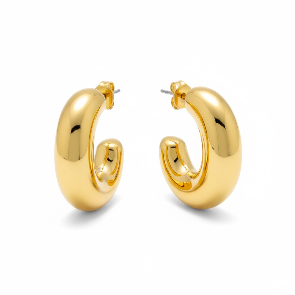 Com curvas suaves e acabamento espelhado em banho de ouro 18k, esse brinco foi criado para quem irradia brilho e confiança em cada detalhe.
