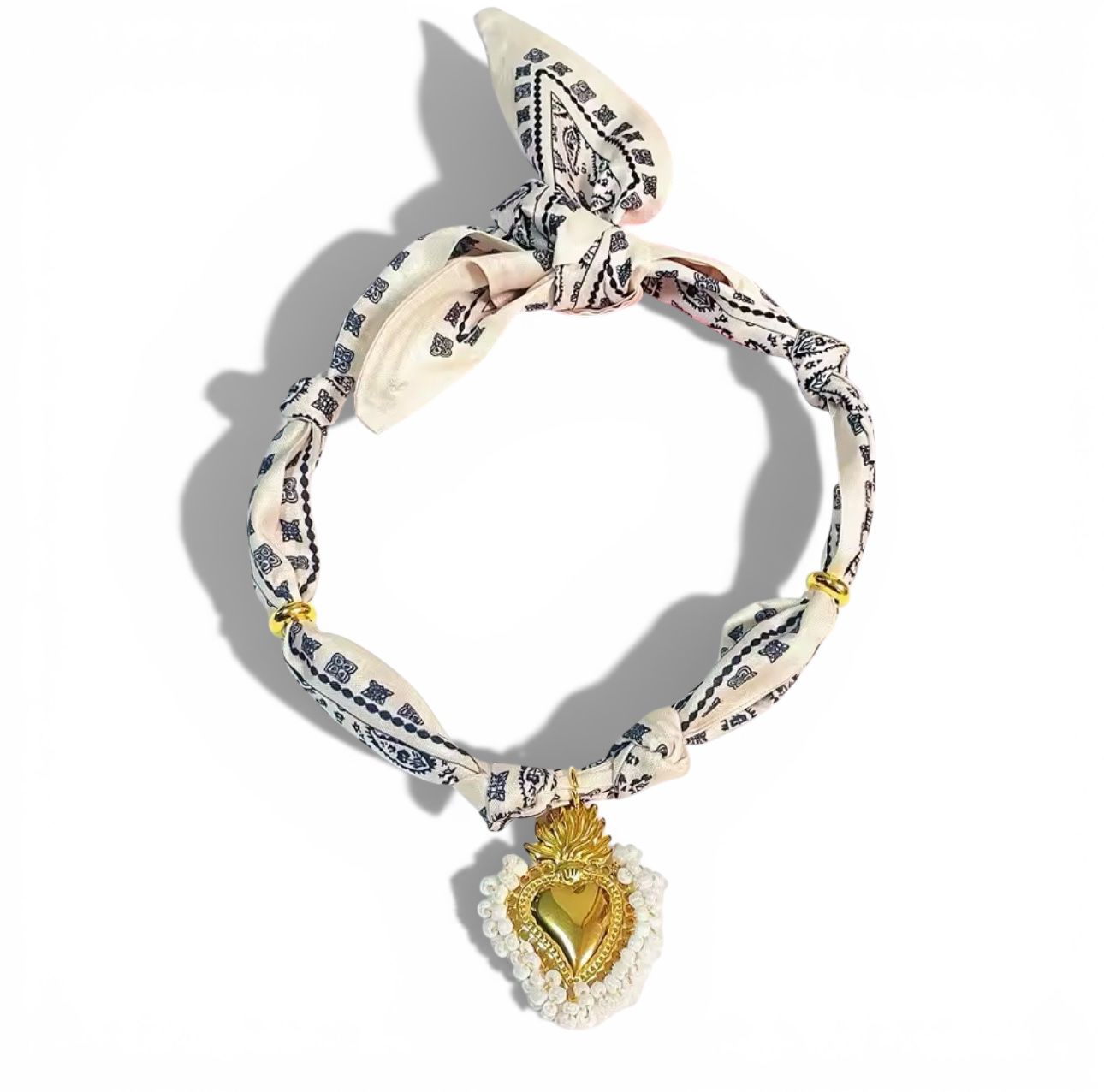 Um colar lenço que traduz sofisticação atemporal. Confeccionado em tecido sedoso e leve, possui caimento delicado e toque macio, ideal para compor produções elegantes e femininas. O destaque fica por conta do pingente em aço premium com banho de ouro, adornado por detalhes que remetem à delicadeza das pérolas, criando um visual clássico com personalidade. Perfeito para elevar looks neutros ou complementar produções refinadas.