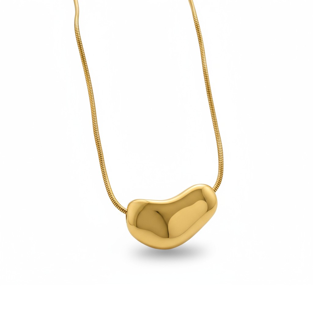 Com design fluido e formas inspiradas na natureza, o Colar Orgânico apresenta um pingente de linhas suaves em aço premium com banho de ouro, sustentado por uma corrente rabo de rato mais robusta que adiciona sofisticação e modernidade. Uma peça contemporânea, elegante e versátil, perfeita para destacar qualquer produção com estilo único.