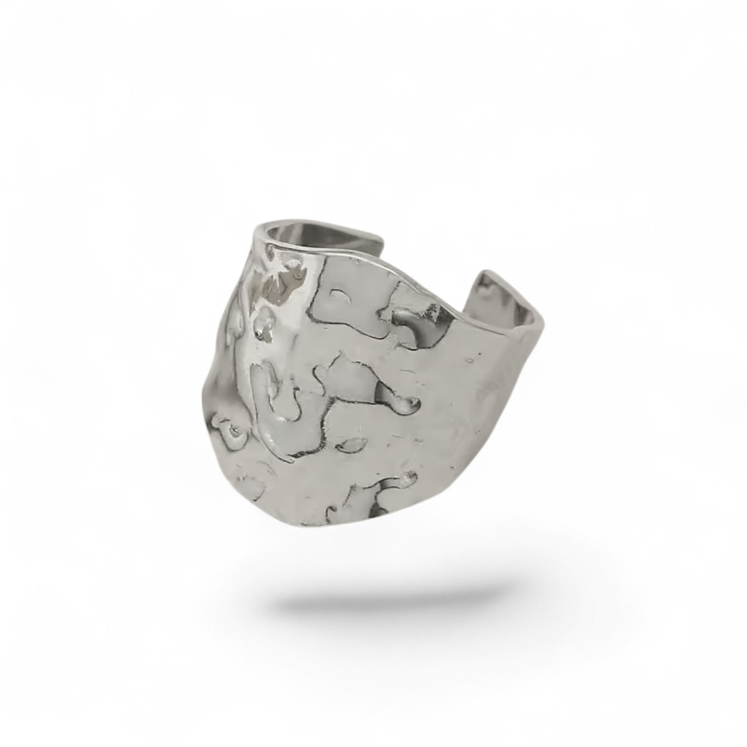 Inspirado no mistério e na serenidade da lua, o Anel Lunare é feito em aço premium prateado, com design esculpido que lembra formas orgânicas e texturas cósmicas. Sofisticado e marcante, reflete a elegância do brilho prateado em contraste com sua superfície artística, tornando-se símbolo de equilíbrio e modernidade.
