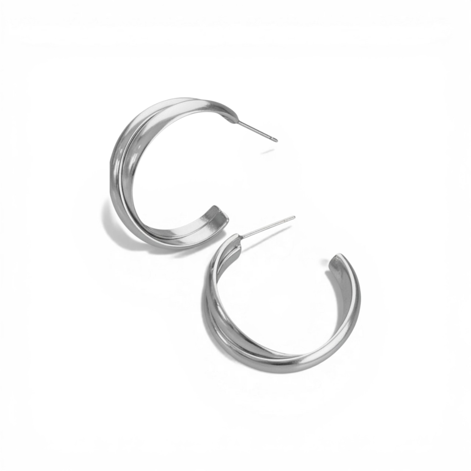 Brinco argola com design em camadas que cria um efeito moderno e volumoso, mantendo leveza e sofisticação. A versão em Aço Premium traz um brilho elegante e versátil, ideal para quem busca um acessório fácil de combinar, sem abrir mão de estilo e presença.